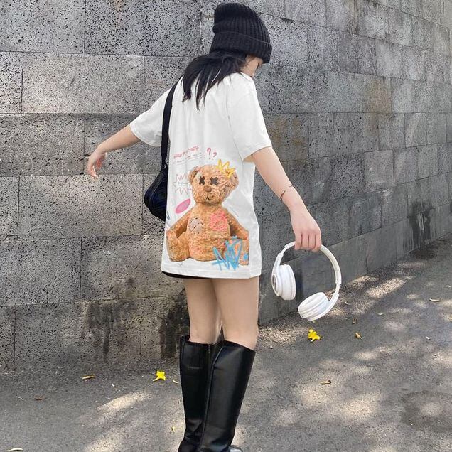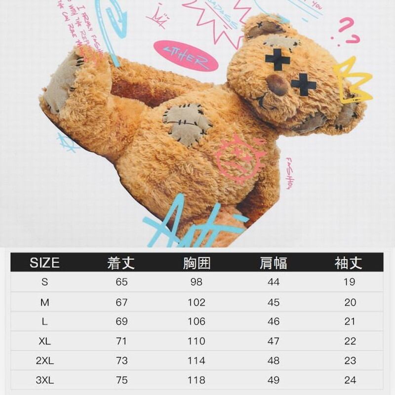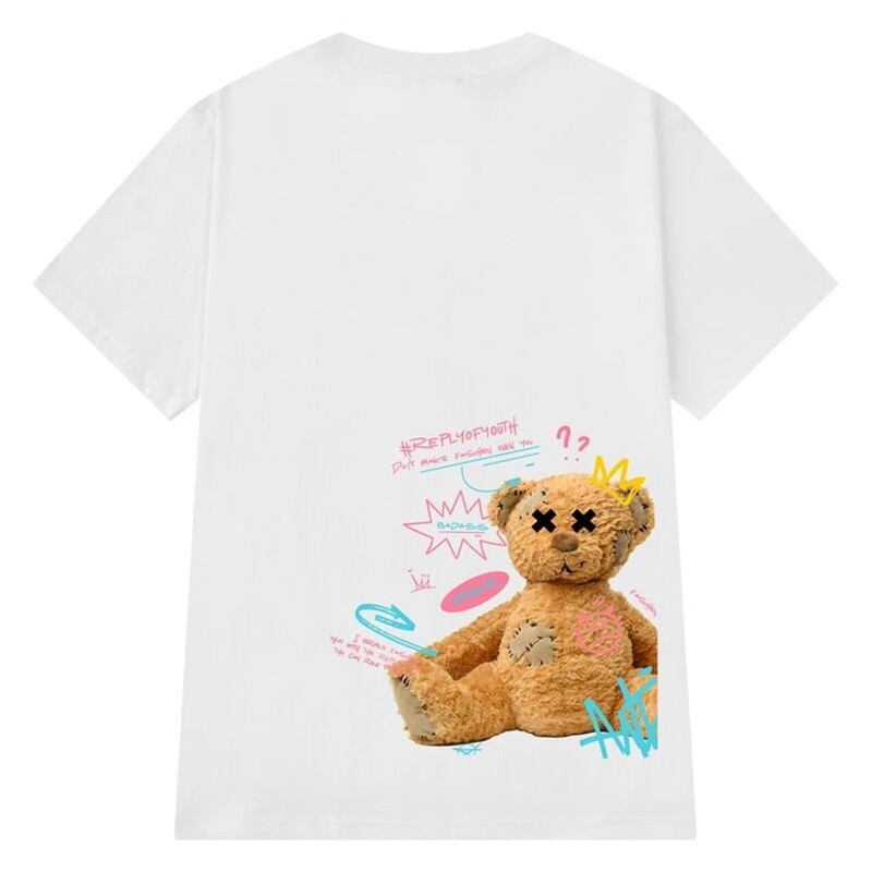 ユニセックスで着れる6サイズ展開!つぎはぎのクマちゃんのバックプリントが可愛い半袖Tシャツです。