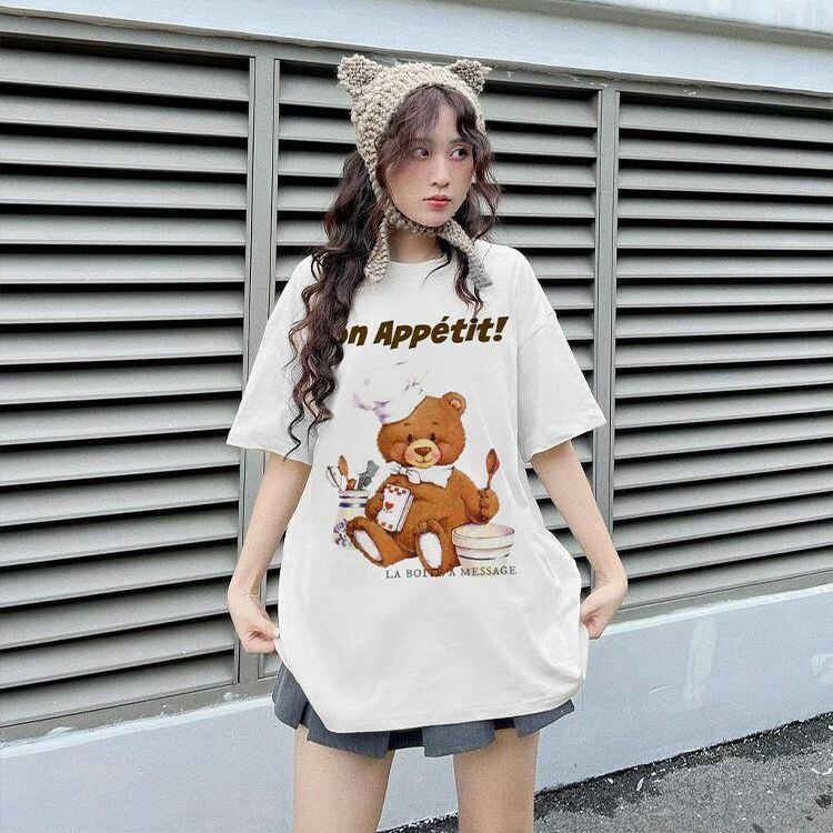 選べる2カラー・6サイズ!クマちゃんコックさんプリントがかわいい半袖シャツです。