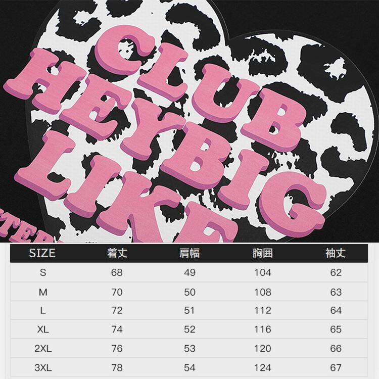 ユニセックスで着れる2カラー・6サイズ!ヒョウ柄ハートのプリントが可愛くてインパクト大の長袖Tシャツです。